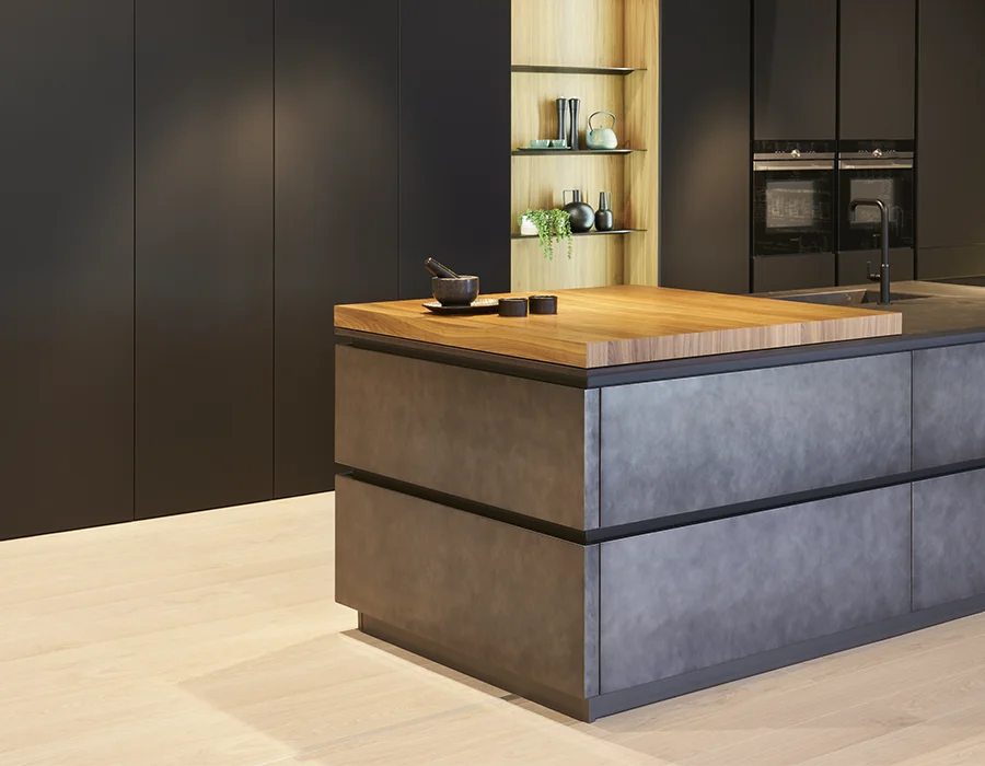 구성을 완성하기 위해 Brianza Walnut veneer 본연의 질감을 살린 sliding folding countertop을 추가했습니다. 이는 필요에 따라 작업 공간을 확장할 수 있는 유연한 디자인 솔루션으로, 아일랜드 상부에 손쉽게 추가 작업면을 형성할 수 있도록 설계되었습니다.하부 메커니즘은 Made in Italy의 정교한 기술로 제작된 강화 알루미늄 가이드 시스템을 기반으로 합니다. 이 구조는 직선 및 대각선 방향 모두에서 부드럽고 안정적인 슬라이딩을 보장하며, 내부에 숨겨진 고강도 부품 덕분에 높은 하중에도 견딜 수 있는 내구성과 견고함을 자랑합니다.이로써 공간은 필요에 따라 형태를 바꾸며, 디자인과 기능이 완벽히 조화를 이루는 유연한 주방으로 완성됩니다.