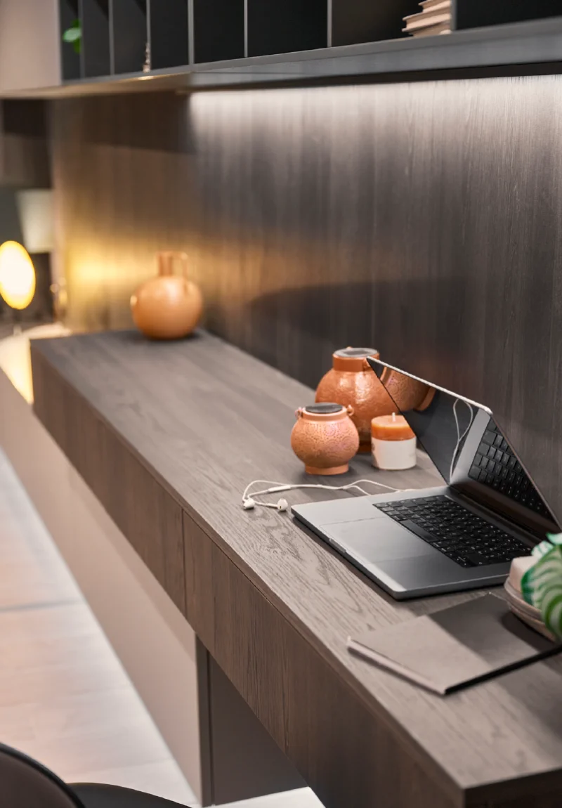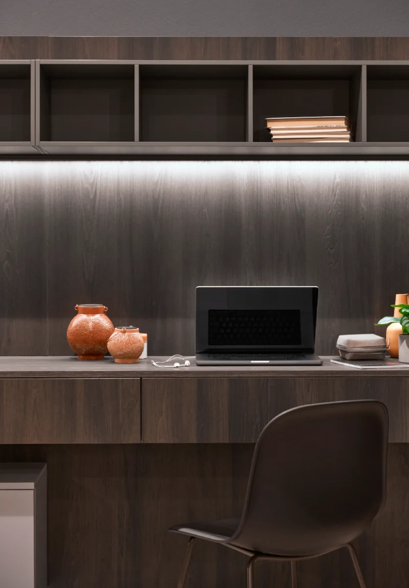이탈리아에서도 재택근무는 점점 보편화되고 있으며, 그에 따라 집 안의 일상 공간 속에서도 기능적이면서도 조화로운 업무 환경이 요구되고 있다. 전통적인 오피스처럼 실용적 요소가 필수적이지만, 동시에 주거 공간의 디자인과 조화를 이루어야 한다. 이 두 가지 조건을 균형 있게 결합함으로써, 필요한 기능성과 감각적인 미학이 공존하는 새로운 형태의 홈오피스 공간이 완성된다.