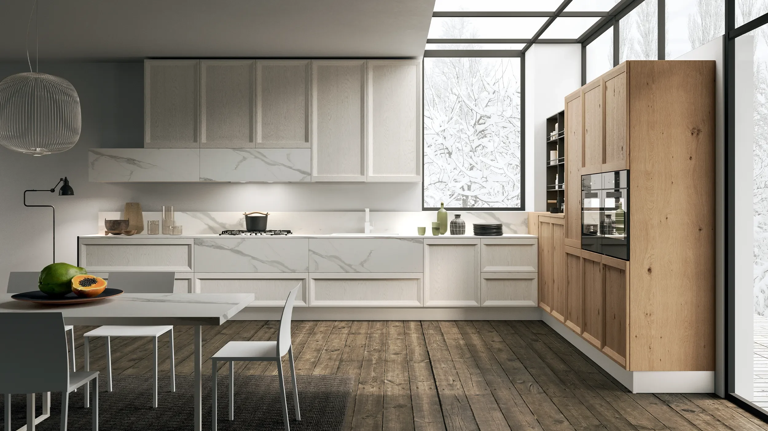 주방의 중심이 되는 상판은 매일의 사용에도 변함없이 견고해야 한다. 이 구성에는 HPL Unicolor edge 상판이 사용되어 표면, 내부, 모서리까지 모두 동일한 색감으로 완성된다. 습기와 열, 긁힘, 오염, 충격에 강한 고압 플라스틱 시트로 마감된 이 방수 소재는 오랜 시간 위생적이고 실용적인 사용성을 유지한다.