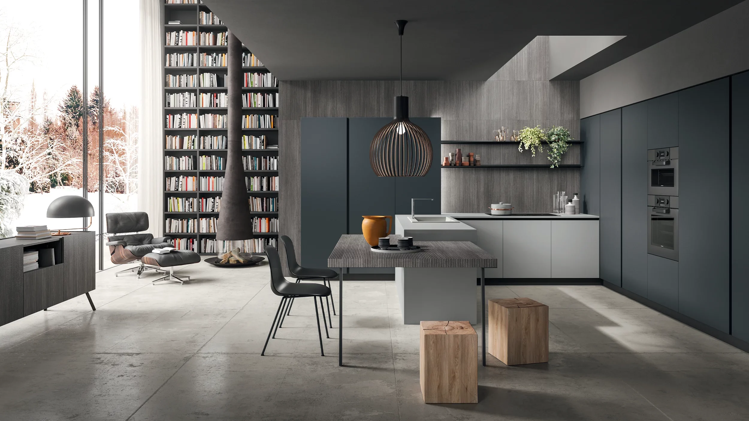 Cannetè Gris 마감의 상판은 컬러를 맞춤 제작할 수 있는 XXL 지지대 위에 놓여 있어 안정감과 디자인적 포인트를 동시에 준다. 키큰장 내부에는 탈착식 바구니와 서랍을 구성할 수 있어, 식재료나 주방용품을 효율적으로 정리하고 수납할 수 있다.