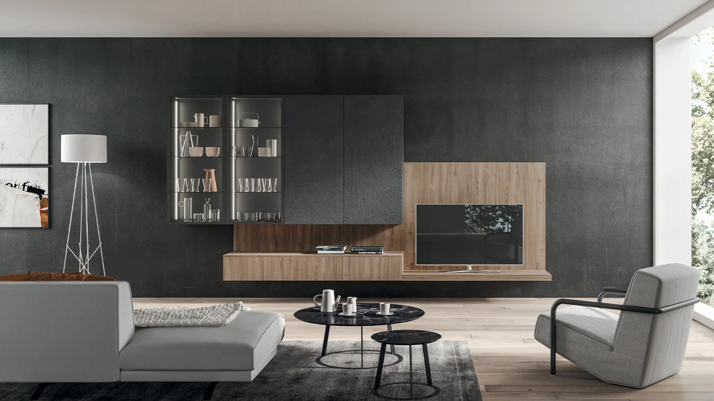 ASTRA Cucine의 다양한 구성 요소를 통해, 주방의 마감과 소재를 그대로 이어받은 거실을 완성할 수 있습니다.