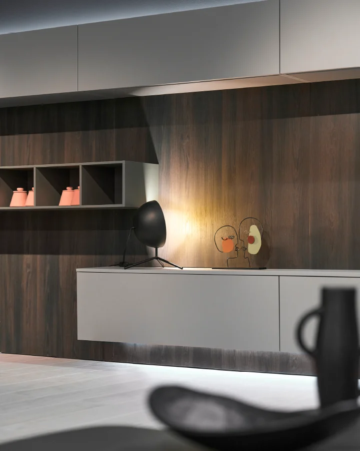 오늘날의 주거 환경에서 주방과 거실은 종종 하나의 흐름 안에서 연결되며, 생활의 습관과 일상의 순간들을 함께 담아낸다. 동일한 디자인 컨셉 안에서 탄생한 리빙 존의 가구는 주방 가구와 형태, 소재, 컬러가 완벽하게 조화를 이루어, 휴식과 교류가 중심이 되는 공간을 만들어낸다. 이를 통해 각 영역은 자연스럽게 연결되고, 공간은 더욱 효율적이고 균형 있게 활용된다.